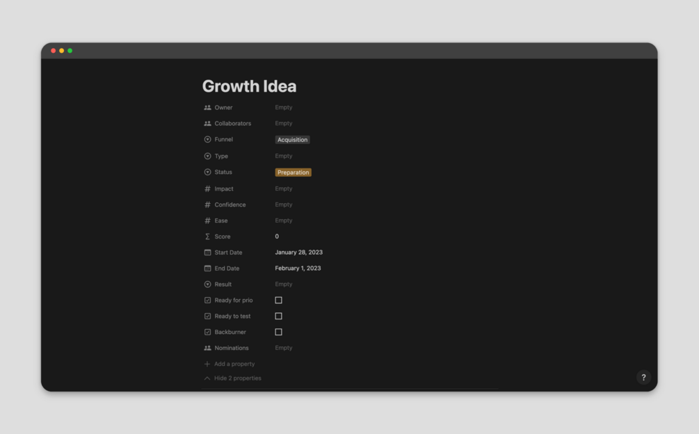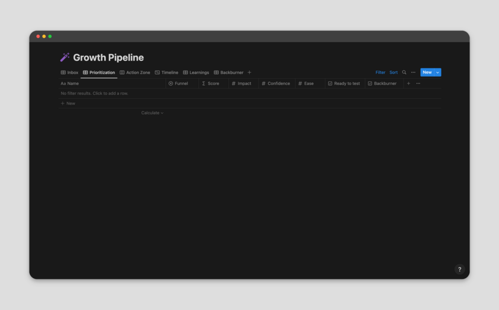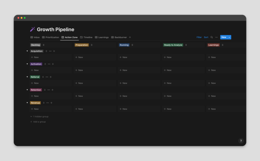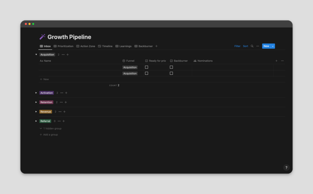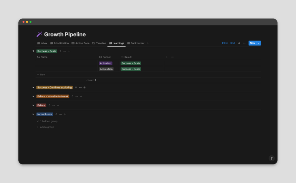 Growth Experiment Pipeline Template for Notion